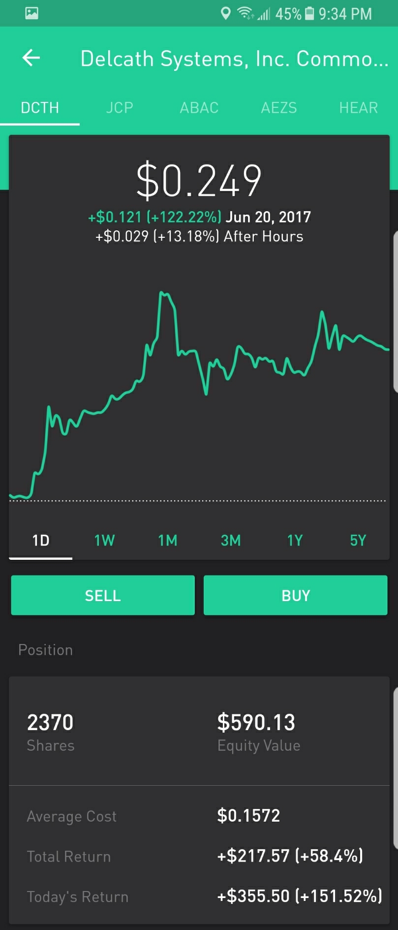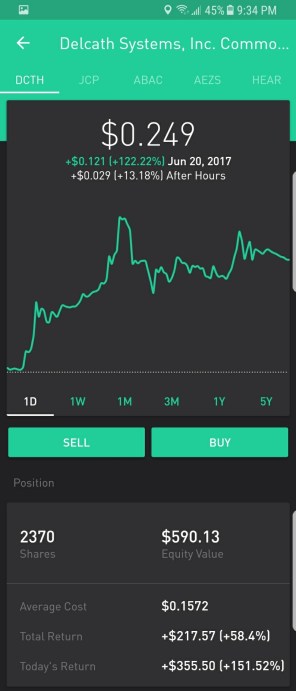 But the point is that–wow. When the stocks were .08 cents I was so tempted to sell. I wasn’t sure it could get any better. Then it hit .11! I decided to not get my hopes up. “.13 by the end of the day, if we’re lucky,” I wrote somewhere on StockTwits on Monday. And boy, have I never been more happy to be wrong in my life–the damn stock actually hit .30 cents at it’s daily high the next day, settling around .25 before the markets closed. God bless Delcath Systems.